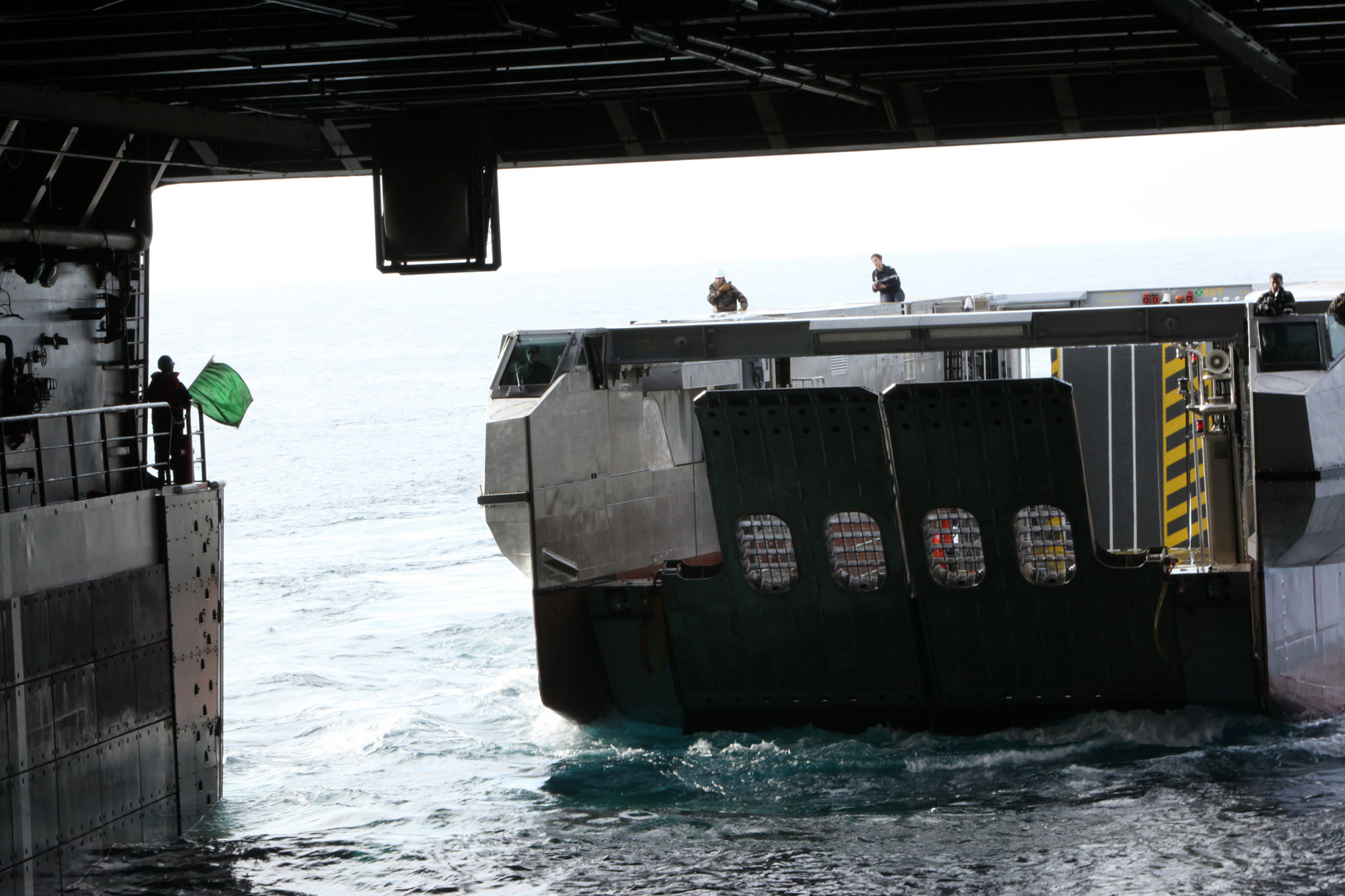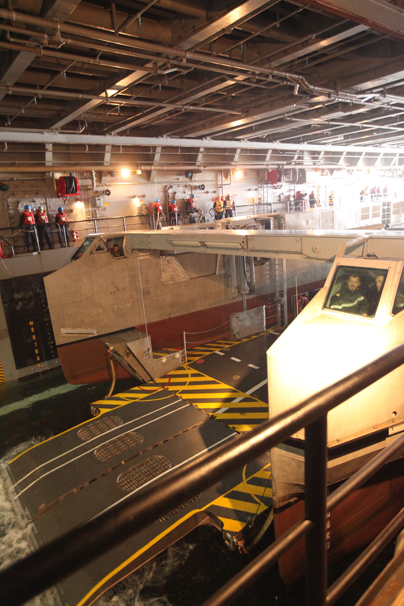 L’Engin de Débarquement Amphibie Rapide ou EDAR est arrivé le 4 février à bord du bâtiment amphibie américain USS San Antonio lors d’un exercice de récupération, au cours de l’exercice Bold Alligator 2012.