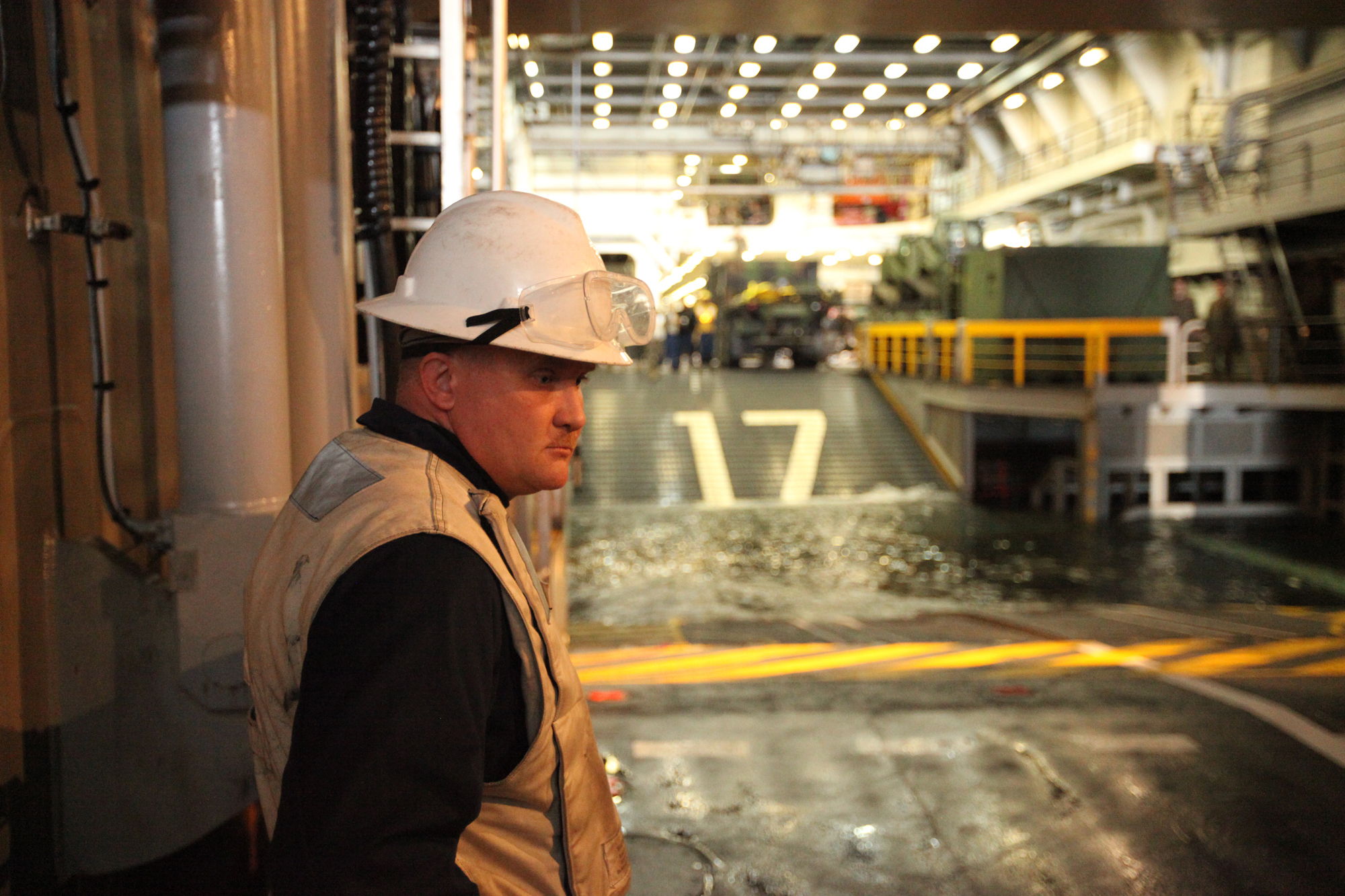 Le lieutenant de vaisseau Alex Nichols, officier de protection de la force à bord du BPC Mistral, avait embarqué sur le San Antonio la veille de l’arrivée de l’EDAR pour mener des vérification avant la venue de l’EDAR.