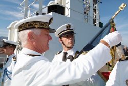 Le vendredi 23 juin, le vice-amiral d’escadre Philippe Sautter, commandant la force d’action navale, a remis la fourragère 39 - 45 au bâtiment de soutien à la plongée (BSP) Le Malin.