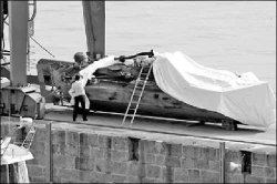 Le submersible sera étudié par des experts dans un arsenal de Moaña. / J. LORES