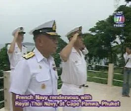Le Vice-Amiral Hubert de Gaullier des Bordes, Commandant de la flotte française de l’Océan Indien, a effectué hier matin une visite de courtoisie à la 3ème flotte de la Marine Royale Thaïlandaise, commandée par le Vice-Amiral Thana Bunnag, à sa base de Cape Panwa sur l’île de Phuket, point de départ d’une série de rencontres et de rendez-vous.