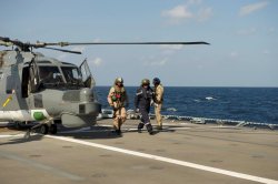 Vendredi 13 décembre 2013, le contre-amiral Hervé Bléjean, commandant de la force européenne Atalante luttant contre la piraterie au large des côtes somaliennes, s’est rendu à bord de la frégate allemande Hessen.