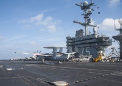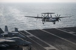Les échanges croisés d’avions entre les 2 porte-avions américain et français se sont poursuivis le 14 janvier. Ce fut le tour d’un E2-C Hawkeye de se poser sur le porte-avions USS Harry S. Truman. Et un Super-Etendard l’a survolé.