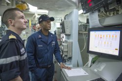Vendredi 17 janvier, 8h00 : le Surcouf est à l’heure au point de rendez vous avec l’USS Stout. La frégate française prend le contrôle tactique avant d’effectuer un exercice d’évolution tactique : en situation de proximité, les deux bâtiments réalisent différentes formations. Cet exercice s’est achevé par une prise de photographies par le Panther.