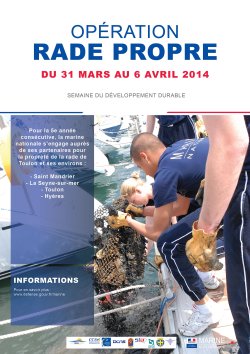 A l’initiative de la Marine Nationale et pour la cinquième année consécutive, une grande campagne de nettoyage sera conduite dans la rade de Toulon et ses environs du 31 mars au 06 avril prochain, au cours de la semaine nationale du développement durable.