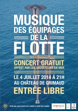 Vendredi 4 juillet 2014, l’Orchestre d’Harmonie de la Musique des Équipages de la Flotte vous propose un concert au Château de Grimaud à 21h.