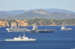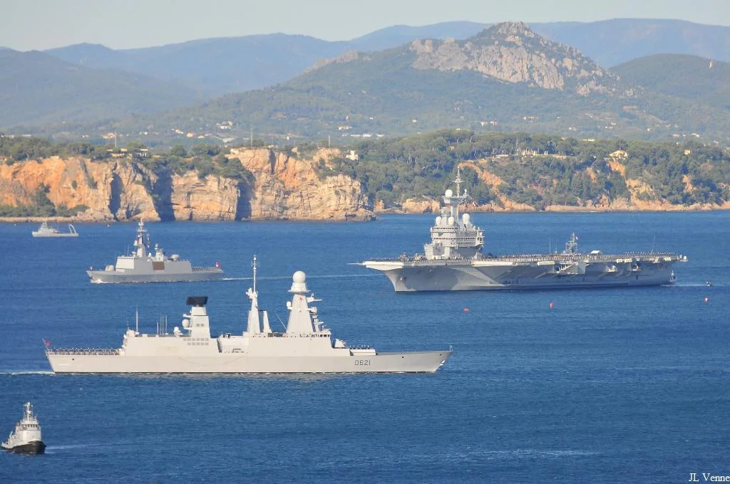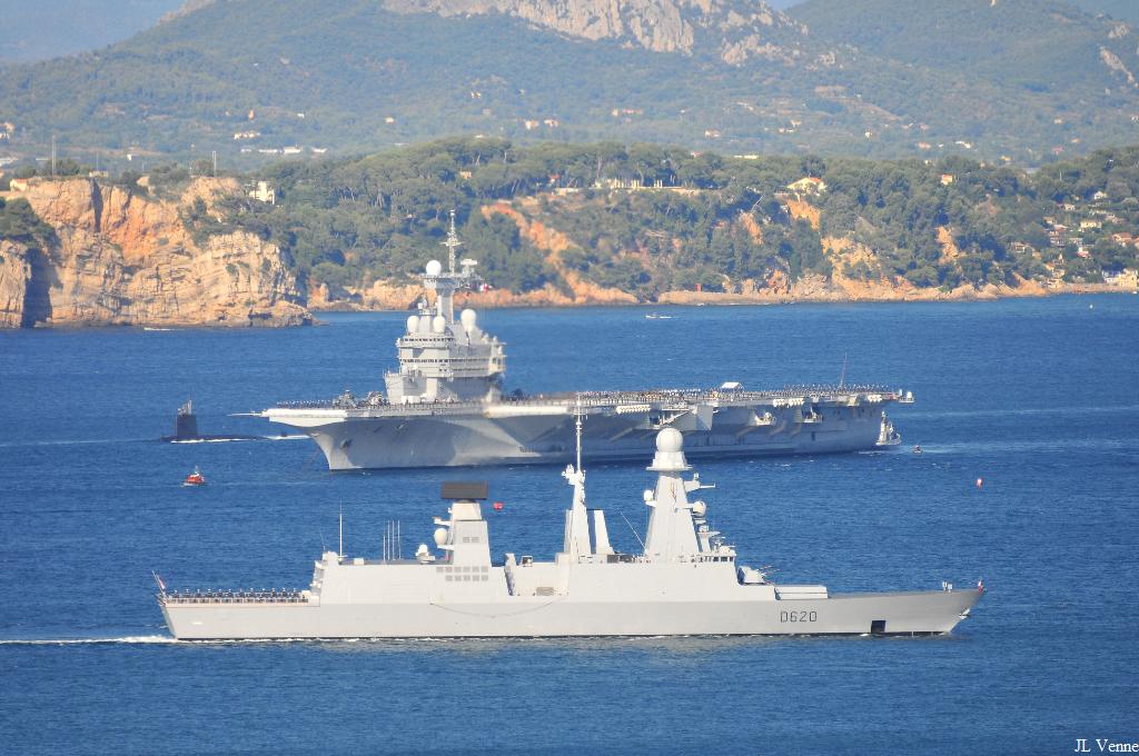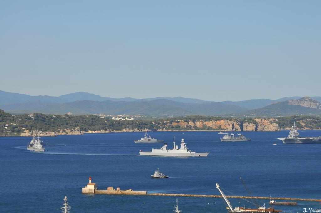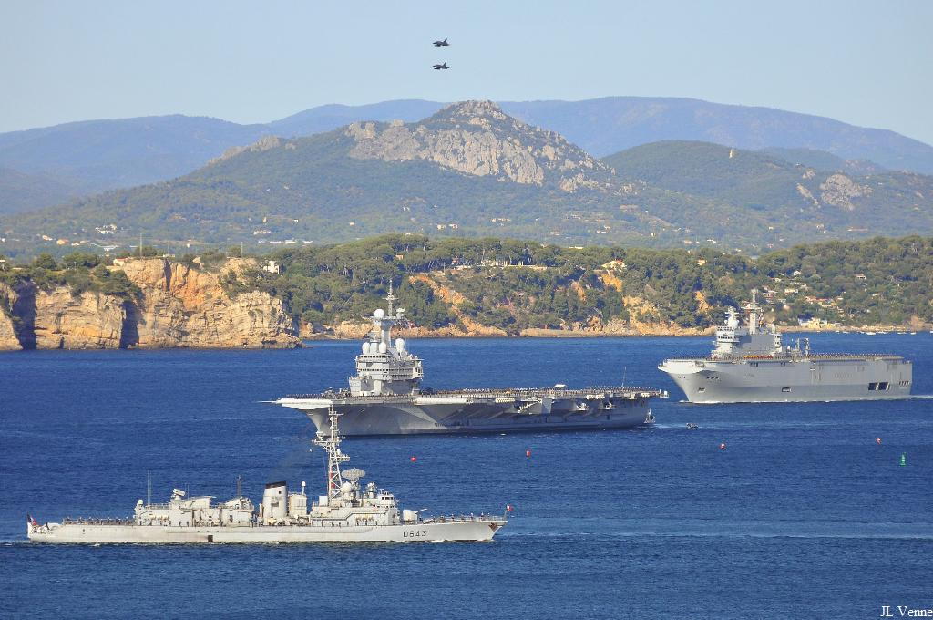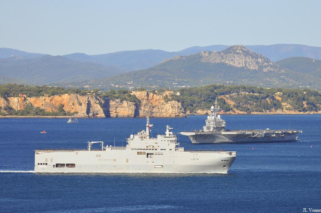Voici des images de la grande répétition générale de la revue navale du 15 août qui s’est déroulée le 13 août devant les côtes varoises. Ont participé à ce défilé le porte-avions Charles de Gaulle, le bâtiment de projection et de commandement Tonnerre, le sous-marin nucléaire d’attaque Perle, les frégates de défense aérienne Forbin et Chevalier Paul, la frégate antiaérienne Jean Bart, la frégate anti-sous-marine Jean de Vienne, les frégates Aconit et Guépratte, l’aviso Commandant Birot, le pétrolier-ravitailleur Meuse, le bâtiment école algérien Soummam, la corvette marocaine Tariq ben Ziad et le patrouilleur tunisien La Galite.