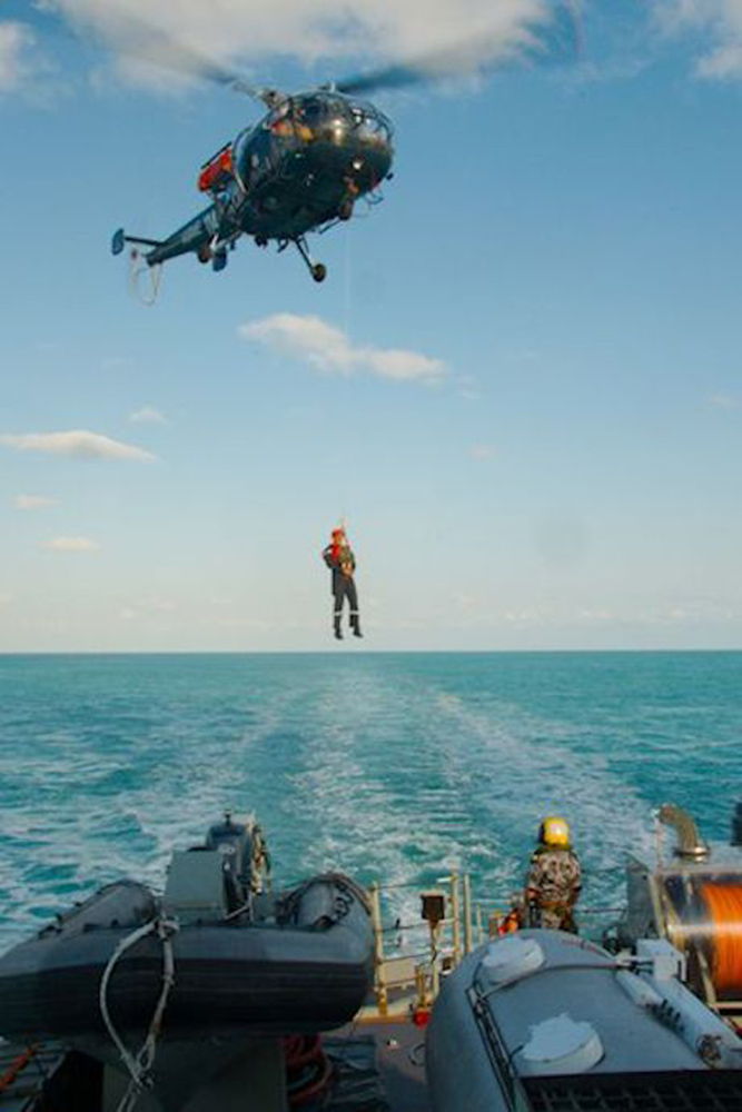 Hélitreuillage sur la plage arrière du HMAS Diamantina