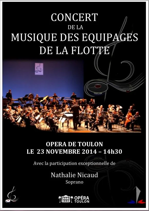 A l’occasion de la Ste-Cécile, patronne des musiciens, et de la sortie de l’album “les plus belles pages de 14-18” de Nathalie Nicaud, soprano, la Musique des Equipages de la Flotte de Toulon donne 2 concerts exceptionnels les 22 et 23 novembre.