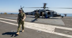 Le 8 mars, le général Martin Dempsey, chef d’état-major des armées américaines (chairman of the U.S. joint chiefs of staff), a été accueilli par son homologue français à bord du porte-avions Charles de Gaulle.