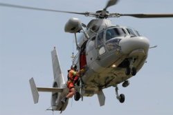 Un marin français montre comment utiliser un hélicoptère dans le cadre d’une mission de sauvetage en mer. © TRACEY SHELTON / Phnom Penh Post