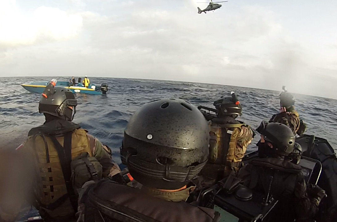 La frégate de surveillance des Forces Armées aux Antilles a intercepté un go-fast au large du canal de la Dominique, avec une vingtaine de kilos d’herbe de cannabis et trois présumés trafiquants.