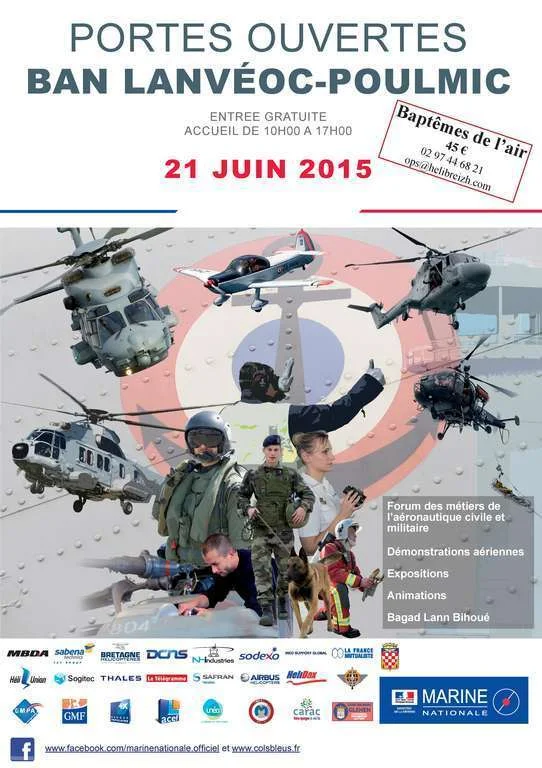 Le dimanche 21 juin 2015, de 10h à 17h, à l’occasion des 70 ans du réarmement de la base, la base d’aéronautique (BAN) de Lanvéoc-Poulmic ouvre ses portes pour la journée.