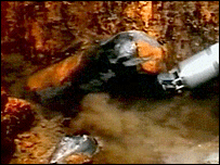 Des bouteilles de mercure retrouvées par un bras robotisé.