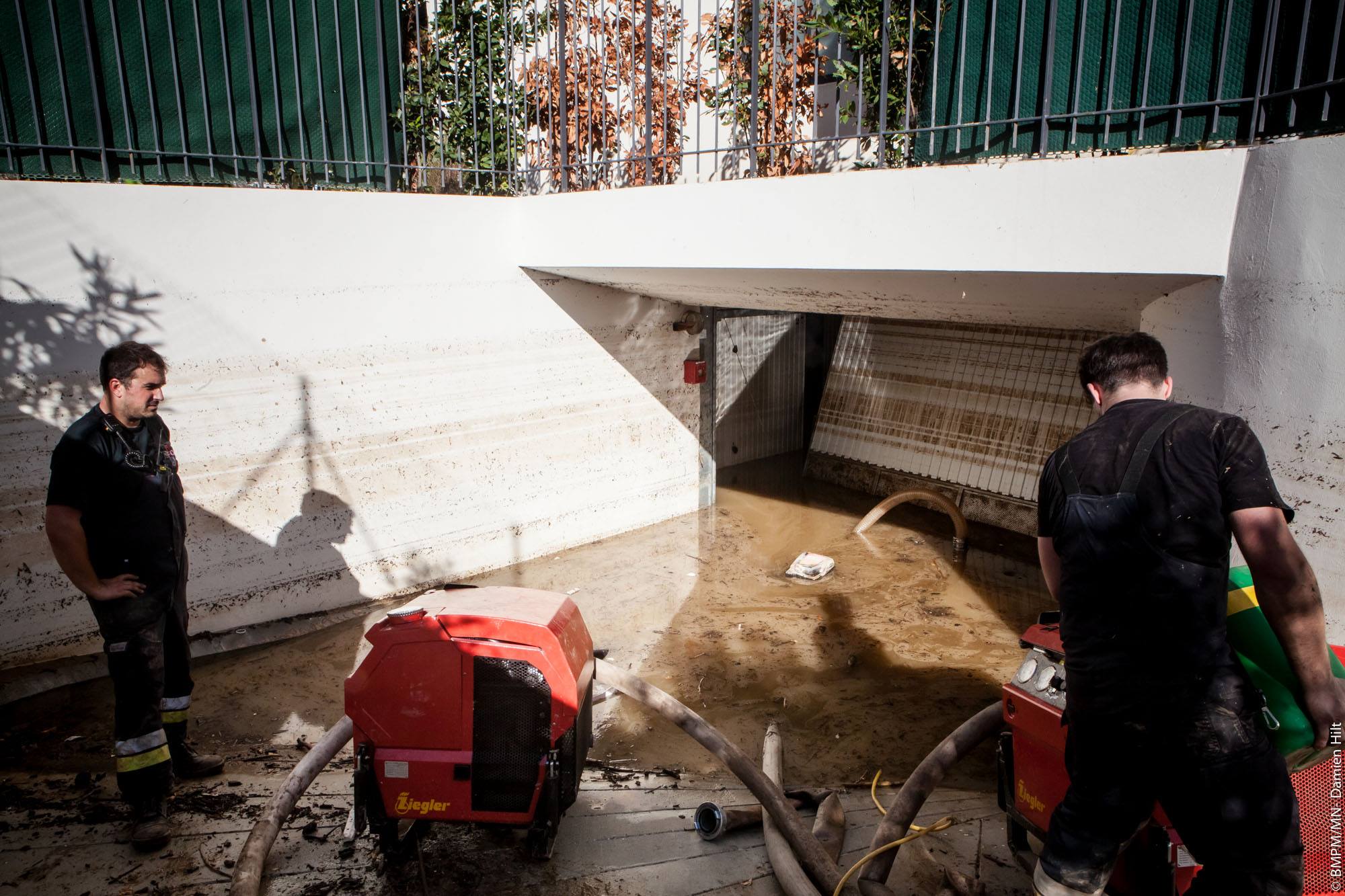 Le Parc Marineland a également pu compter sur la solidarité des marins-pompiers : Mardi 6 octobre, une équipe de 30 marins-pompiers a, grâce à du matériel spécifique de pompage, évacué les bassins des animaux marins des eaux boueuses qui menaçaient leur santé.