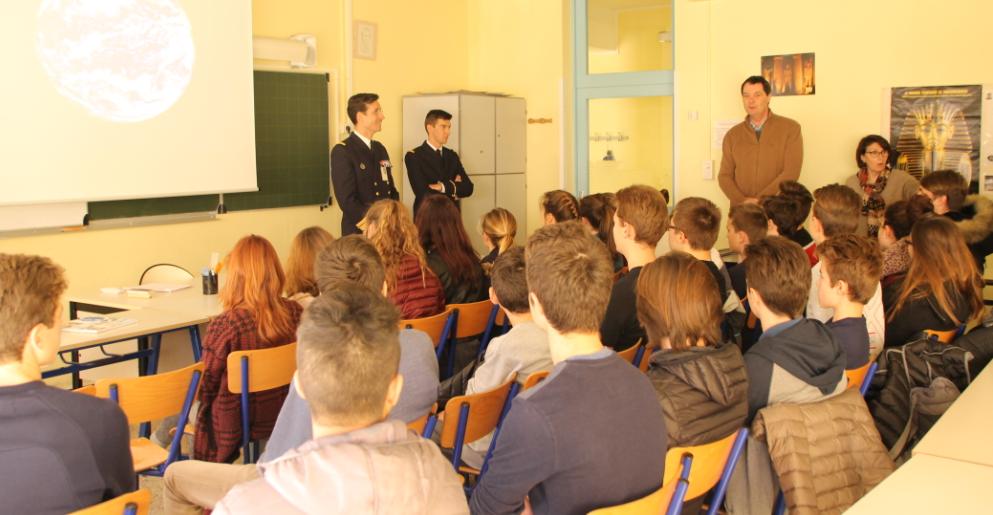 Début février une délégation de marins du « Jean Bart » s’est rendue au collège Bon Accueil de Toulon, dans le cadre de son jumelage avec cet établissement.
