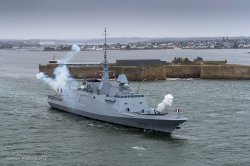 17 février 2016, 12h30. La frégate multimission Languedoc franchit une nouvelle étape en quittant le site DCNS de Lorient, après quatre ans de construction en Bretagne. Pour son départ vers la côte méditerranéenne, l’équipage a perpétué la tradition en tirant vingt-et-un coups de canon 15 minutes après son départ. Ce geste pacifique, dont l’origine remonte au Moyen-Age, est une marque de salut aux autorités et à la population, à laquelle les habitants de la région lorientaise sont très attachés.