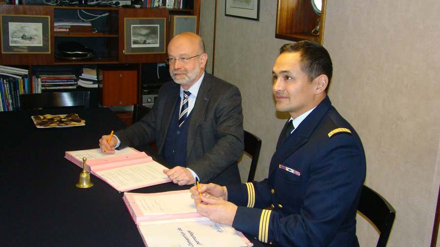 Vendredi 26 février à 14h30, à Brest, le Lieutenant de vaisseau Pierre Sithamma commandant le bâtiment hydrographique La Pérouse, a accueilli à son bord Olivier Champeau, proviseur du lycée La Pérouse – Kerichen, ainsi que Gaëlle Parvillers, proviseur adjoint, pour signer une convention de partenariat entre le bâtiment et le lycée éponyme.