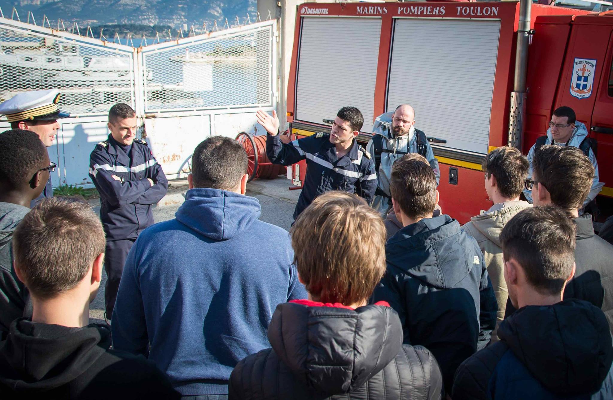 Mardi 15 mars 2016, le Pôle Écoles Méditerranée a reçu une quinzaine d’élèves de terminale professionnelle du lycée Langevin de La Seyne sur mer afin de découvrir la formation et les filières d’emploi qu’offrent la Marine dans les domaines notamment de la Mécanique et de l’Électrotechnique.
