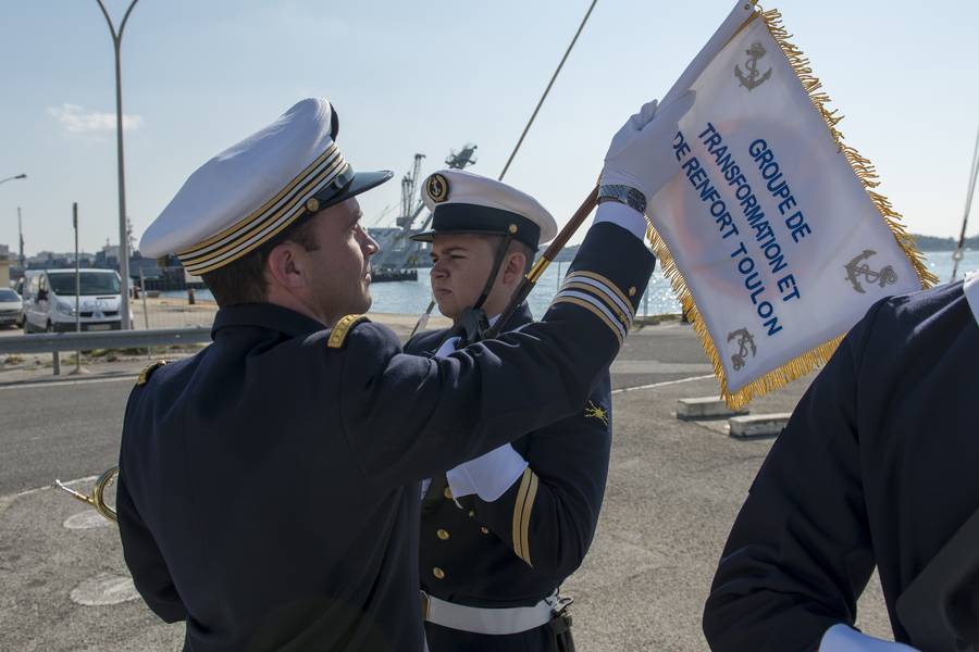 Le 18 mars 2016, le capitaine de frégate Jean-Pierre Helluy, directeur du groupe de transformation et de renfort Toulon, s’est vu remettre des mains du capitaine de vaisseau Luc-Marie Lefebvre, adjoint à Toulon de l’amiral commandant la Force d’Action Navale, le fanion officiel de l’unité.