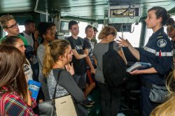 Ils ont ce large sourire du jeune lycéen découvrant pour la première fois un « bateau gris » et posent des questions qui ne mentent pas : « combien d’hélicoptères peuvent décoller en même temps du pont d’envol ? », « combien de personnes sont nécessaires en passerelle pour la navigation ? », Guillaume, Emma, et les autres semblent captivés par leur découverte du BPC « Tonnerre ».