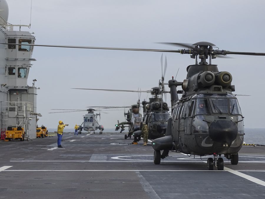 Après l’exercice Griffin Strike en Grande Bretagne, le Bâtiment de Projection et de Commandement Dixmude a participé, cette fois, à un entraînement avec la marine et l’armée terre espagnole le 29 avril 2016. Quatre hélicoptères des Forces Aéromobiles de l’Armée de Terre espagnoles (FAMET), un Chinook, deux Super Puma, un Tigre et un Sea King de l’aéronautique navale, ont effectué de nombreuses séances d’appontages et de saisinages sur le BPC.