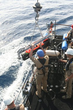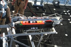 Une fibre optique permet de diriger le drone depuis le Fulda et de récupérer les images de la caméra vidéo embarquée dans le drone.