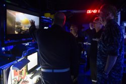 Le commandant de l’USS Ross, le Cmdr. Russell Caldwell, a fait visiter son destroyer au vice-amiral James Foggo III, commandant de la 6è Flotte, au contre-amiral Bernard-Antoine Morio de I’Isle, sous-chef d’état-major « opérations aéronavales » de l’état-major de la marine, et au vice-amiral d’escadre Charles Henri du Ché, commandant en chef pour la Méditerranée.