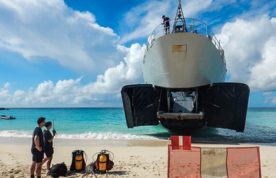 Du 12 septembre au 3 octobre 2016, le bâtiment de transport léger (BATRAL) Dumont d’Urville a effectué une mission de reconnaissance de sites amphibies dans les petites Antilles.