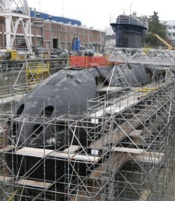 Le HMCS Victoria subit une période d’entretien prolongée. Un groupe de la côte Pacifique espère finaliser un contrat d’1,5 milliard CAN$ pour entretenir les 4 sous-marins du Canada. ©Times Colonist