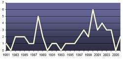 Depuis 1981, la première année pour laquelle des données sur les patrouilles sont disponibles, les forces sous-marines Chinoises ont effectué en moyenne moins de 2 patrouilles par an. Le nombre le plus élevé de patrouilles effectuées en une année depuis 1981 est de 6 en 2000. Au cours de 4 années (1982, 1990, 1993 et 2005), aucune patrouille n’a été effectuée. Sur la période 25 ans, la tendance est seulement que le nombre de patrouilles est passé de 1 par à environ 2,8 par an.