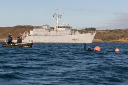 Les plongeurs-démineurs viennent de remonter à la surface et indiquent immédiatement que tout s’est bien passé. Contrairement aux pays anglo-saxons, les plongeurs français sont formés à la plongée autonome. Travaillant toujours en binômes, les plongeurs développent un niveau de compétence exceptionnel.