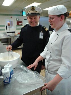 Pendant sa viste d’une journée, le capitaine de vaisseau Etienne Devailly, le commandant de l’école des fourriers de Querqueville, s’est vu présenter de façon complète le rôle de l’école et ses méthodes de formation. Il a aussi visité les différentes divisions d’instruction pour rencontrer les élèves officiers et les stagiaires cuisiniers, serveurs, magasiniers et secrétaires alors qu’ils suivaient la formation.