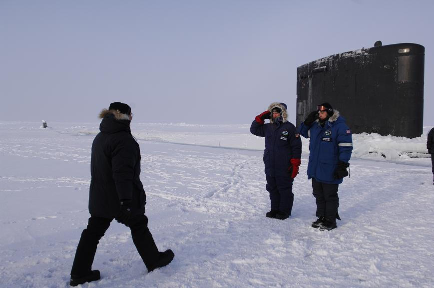 Les marines Américaine et Britannique effectuent un exercice ICEX-07 sur et sous un bloc de banquise à la dérive à environ 180 nautiques au nord de la côte d’Alaska.