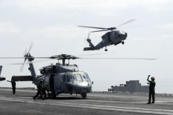 Ils ont été transportés par 2 hélicoptères HH-60H Seahawk de l’US Navy.