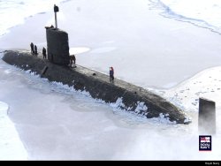 Le 19 mars 2007, le HMS Tireless fait surface après avoir testé ses capacités d’opération et de combat dans les eaux Arctiques sous la banquise. Photo : Royal Navy
