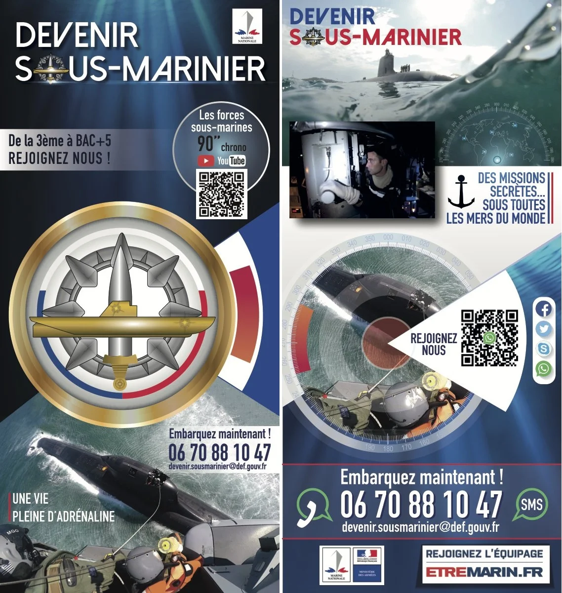 Pour plus d’informations : devenir.sousmarinier@def.gouv.fr ou par téléphone : 06 70 88 10 47. Ainsi que sur les réseaux sociaux Twitter, Facebook et avec le hashtag #devenirsousmarinier.