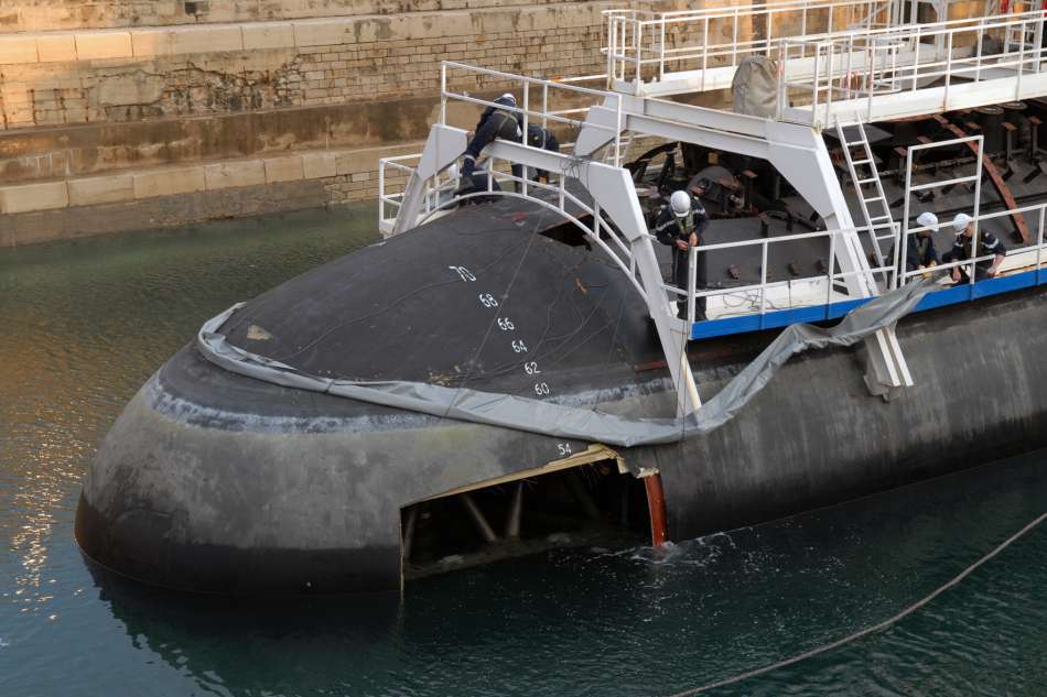 Celles-ci concernent la zone avant et particulièrement le dôme et l’antenne sonar. La nature et la durée des réparations dépendent directement des résultats de cette expertise. Il est cependant certain que la durée d’indisponibilité du sous-marin sera de l’ordre de quelques mois.