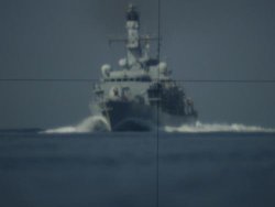 A grande vitesse, vu par le périscope. Photo Royal Navy