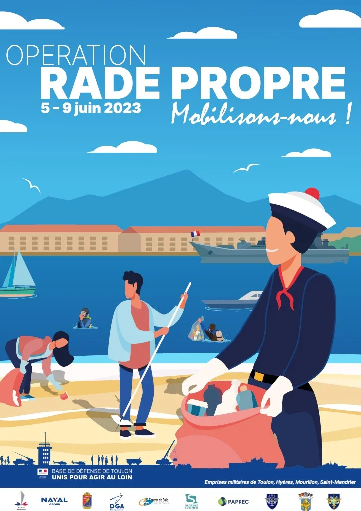 Lancement aujourd’hui de l’opération #RadePropre2023, grande campagne de nettoyage organisée par la base de Défense sur plusieurs sites de la rade de la ville de Toulon en coordination avec de nombreux partenaires institutionnels et privés.