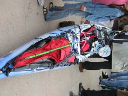 Dans leur kayak, ils emportent tout ce dont ils auront besoin : matériel de secours, voiles, boussole, matériel de bivouak pour le soir,...