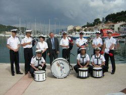 Un public nombreux s’était rassemblé dès 10 heures sur le quai d’honneur de St-Mandrier, devant la mairie. Pour faire patienter la foule, le bagad du CIN St-Mandrier s’était déplacé. Il a interprété des morceaux du patrimoine breton sous les applaudissements nourris des spectateurs.