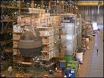 "Il ressemble à une bête féroce. Je pense que c’est un extra-terrestre," remarque Chris Nelson de Bae Systems, pendant que nous marchons autour de l’avant du nouveau sous-marin Astute de la Royal Navy.