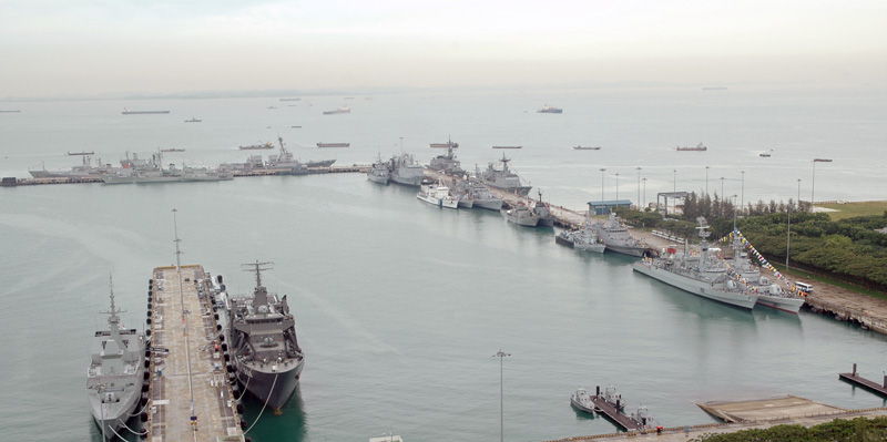 Des navires de différents pays participent à l’exposition dans la base navale de Changi à Singapour. Sont présents HMAS Adelaide, HMAS Bathurst, HMAS Farncomb, BNS Karotoa, PLAN Xiangfan, le Floréal, le Var, INS Mysore, INS Kuthar ICGS Sangram, KRI Lemadang, KD Pahang, KD Laksamana Tan Pusmah, HMNZS Te Mana, HMNZS Endeavour, PNS Babur, RSS Formidable, RSS Persistence, ROKS Munmu the Great, SLNS Samudura, HMS Monmouth et USS Pinckney. © SeaWaves