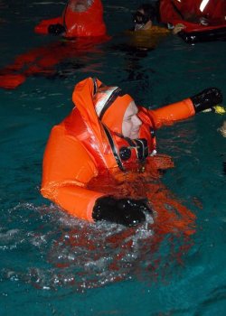 Cette combinaison est utilisée par les sous-mariniers de l’US Navy pour s’échapper d’un sous-marin en détresse à une immersion assez faible.