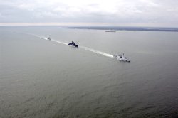 Quatre navires - originaires de France, Russie, Royaume-Uni et Etats-Unis - étaient amarrés à quai en préparation à un exercice d’une semaine. L’exercice (baptisé FRUKUS, un acronyme concocté à partir des initiales de tous les pays participants) aura d’abord lieu dans les eaux de la Virginie et de la Caroline du Nord où les marins vont remplir une mission fictive. Les bâtiments vont exercer leurs compétences en sécurité maritime en faisant semblant d’appliquer des sanctions de l’ONU, a déclaré le Capt. John Gelinne de l’US Navy, commandant la 22è escadrille de destroyers, basée à Norfolk.