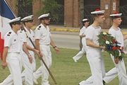 Près de 50 membres d’équipage du La Fayette ont défilé derrière des joueurs de cornemuse. Non seulement, c’est une partie de l’histoire des Américains, mais les marins Français ont déclaré qu’ils étaient honorés de participer à la cérémonie et de garder vivante cette partie de leur histoire.