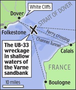 L’épave de l’UB-33 se trouve dans les eaux peu profondes du banc de sable de la Varne.