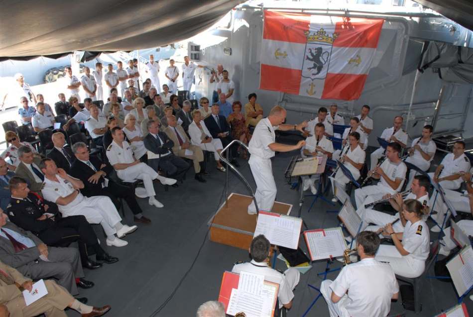 Occasion pour le capitaine de vaisseau Olivier Bodhuin et son équipage de recevoir à bord les délégations des villes marraines du bâtiment (Dieppe et Annecy) ainsi que le 27ème bataillon de Chasseurs Alpins.