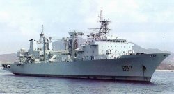 Le destroyer lance-missile Guangzhou et le navire de ravitaillement Weishanhu sont sous le commandement du Major Général [1] Su Zhiqian, adjoint du commandant de la Flotte de Mer de Chine du Sud de la Marine Chinoise.